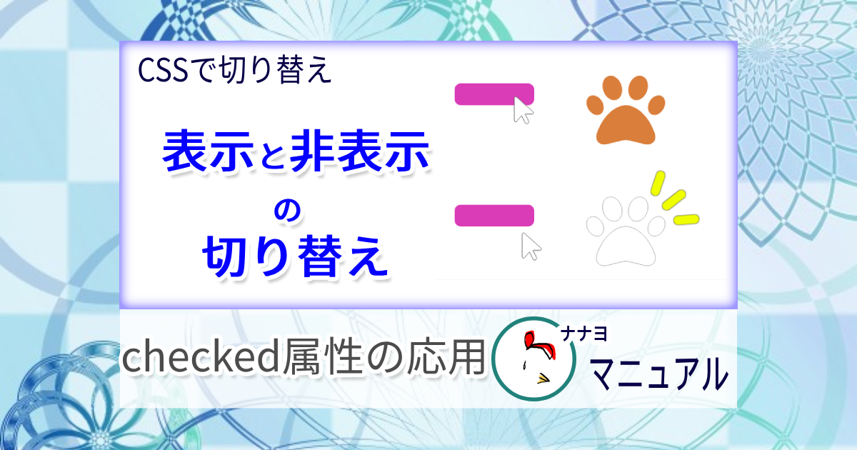 HTML表示/非表示「CSS」ナナヨ マニュアル [表示/非表示切り替え]このページはマジで!英語が苦手なナナヨが、ホームページ作成に必要なHTMLとCSSの基本と応用を快適に使う為、忘れないように作ったメモページです。 2023.12.15 2024.02.02HTMLHTML&CSS