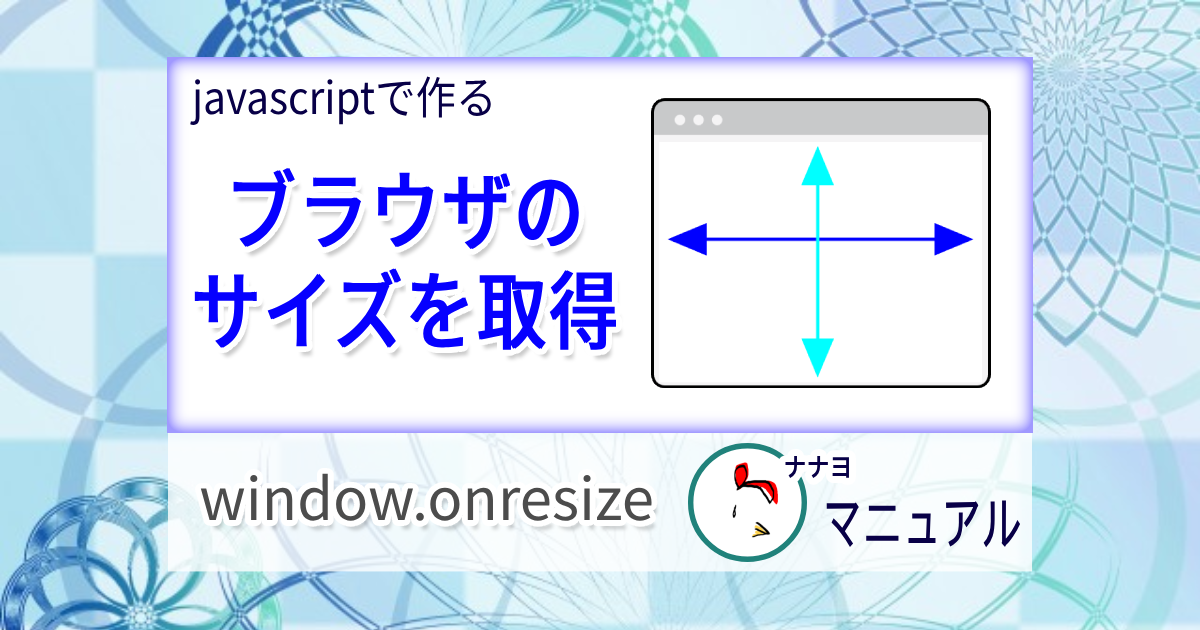 HTMLサイズを取得する「javascript」ナナヨ マニュアル [ブラウザの大きさを取得する]このページはマジで!英語が苦手なナナヨが、ホームページ作成に必要なHTMLとCSSの基本と応用を快適に使う為、忘れないように作ったメモページです。 2024.01.17 2024.01.19HTMLHTML&CSS